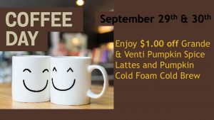 Enjoy $1.00 off Grande & Venti Pumpkin Spice Lattes and Pumpkin Cold Foam Cold Brew.